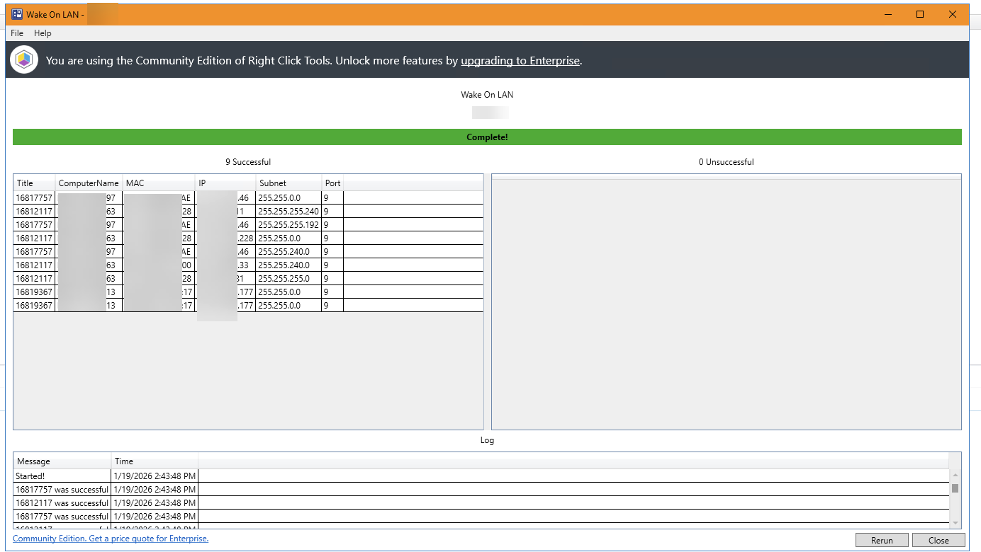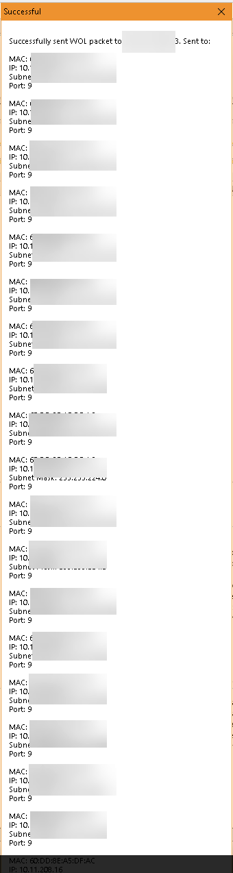 If I am sending a WoL request on one device, which have many IP and MAC addresses, the window is to long to see the βOKβ button.